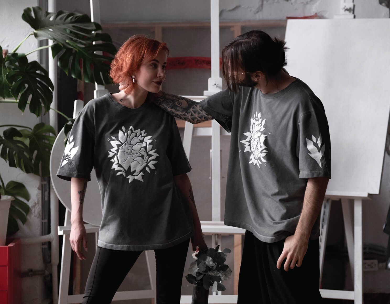 Марина создала иллюстрацию, в которой переложила жар человеческих отношений на символичную связь между персонажами. Коты и драконы, несмотря на внешние отличия, схожи в своей независимости и тяге к уютным местам. А самое теплое место человека — у сердца. Кот в расслабленной позе смотрит на тебя хитрющим взглядом, в то время как дракон сквозь дрёму внимательно наблюдает за происходящим вокруг. Языки пламени плавно перетекают от сердца на плечи, а жук-пожарник следит за тем, чтобы пламя разгорающейся страсти не переросло в неконтролируемый пожар. Изделие, выполненное из мягкого футера, окрашенного по авторскому методу Кати, добавит тепла и уюта в повседневную суету. Объект — парное отражение футболки «Дракон в сердце».