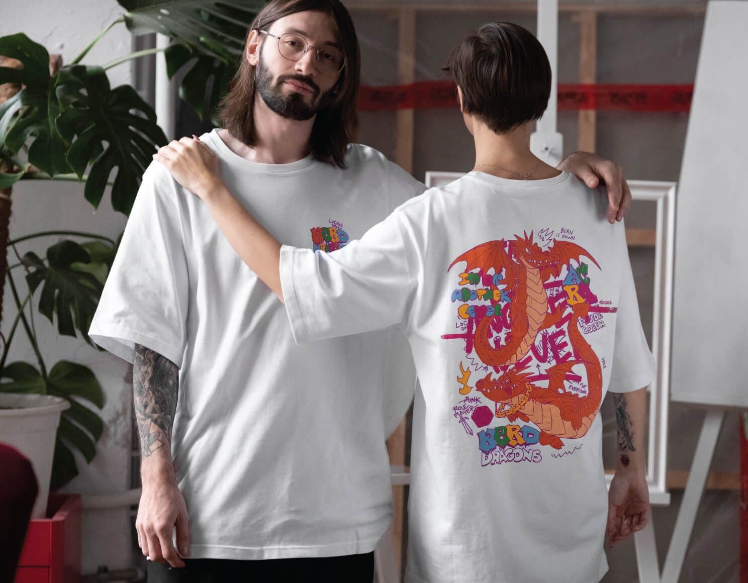 Драконы сегодня проживают в местах, где рождаются фантазии и летают многогранные кубики. Древние существа греют свои чешуйчатые бока на пересечении медиакультуры и настольных игр. Acrafagor создал иллюстрацию с двумя очень самоуверенными драконами. В композиции герои органично окружены шрифтовыми элементами, выполненными в авторском стиле. Ценители непременно заметят знакомые фразы: предложения по проверке навыков и возмущённые высказывания о произволе Мастера в ходе игровой сессии.